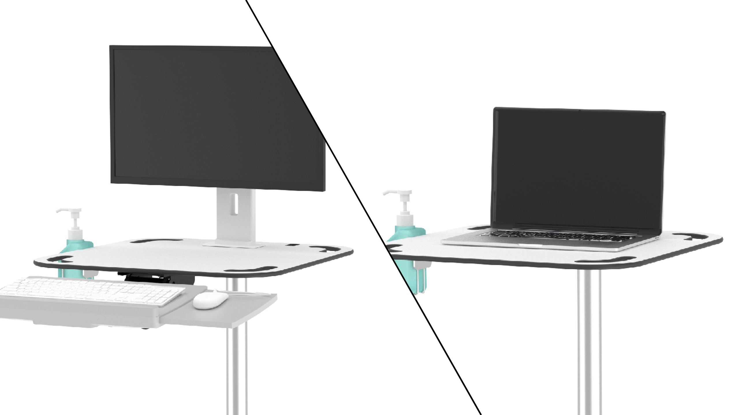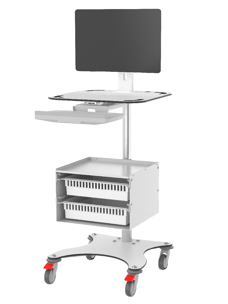 Le chariot peut être équipé d’un ordinateur portable ou d’un ordinateur All-in-One pour une utilisation flexible. Ajoutez un support pour moniteur VESA, ainsi qu’un support pour clavier et une tablette pour souris compacts adaptés tant aux gauchers qu’aux droitiers, et vous serez parfaitement équipées pour la documentation numérique.